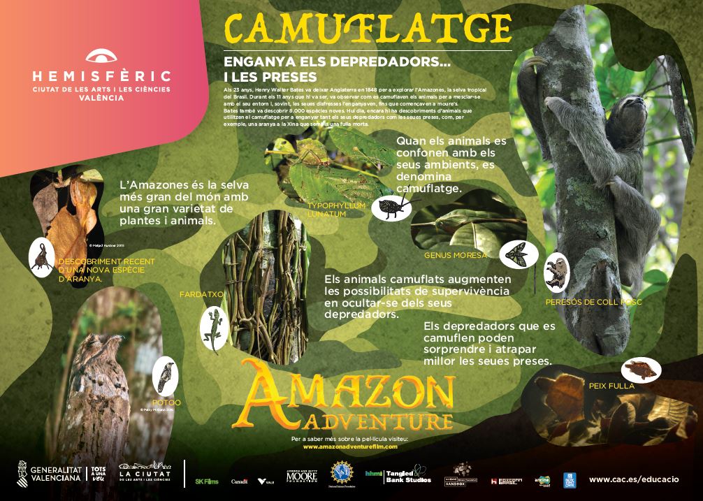 | Secundària | Poster camuflatge Amazon Adventure. |  | Descarga aquí el contenido | Ciències Naturals i Història | Hemisfèric |