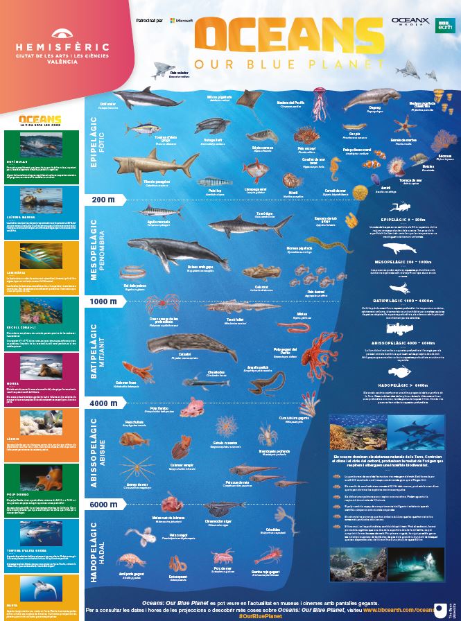 | Primaria | Cartel fauna marina de la proyección Oceans |  | Descarga aquí el contenido | Biodiversidad, medio marino, Ciencias Naturales | Hemisfèric |